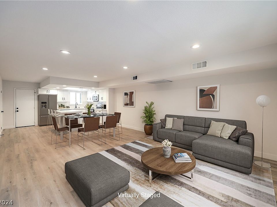 Enjoy this newly remodeled 2-story condo with 3 bedroom, 1.5 baths, covered back yard patio & 1 assigned parking spot in the Vegas HOA community. Located with quick access to interstate 95 and the entertainment, shopping and casinos of Downtown Las Vegas! Home has beautiful interior finishes with open floor plan, recessed lighting, washer/dryer hookups, laminate wood flooring & plush carpet throughout. Customary kitchen with garden view, island, tiled backsplash, white shaker cabinets, new countertops, and stainless steel appliances. Bathrooms include custom dual vanities with black framed mirrors & hardware, custom tiled showers with built-in niche and rainfall shower heads.