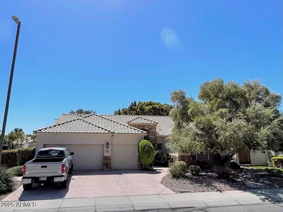 Beautiful corner lot. N/S facing, view fencing overlooking the lake in Arrowhead lakes, play pool with in pool seating and table as well as a fountain feature and gazebo. Cozy, lush and inviting backyar with beautiful views. Home has been majorly upgraded to include a large kitchen island, Corian countertops, gas stove, white Livingstone cabinetry, neutral tile throughout, upgraded carpet in bedrooms, wood shutter throughout entire home. 3 car garage with built in cabinets