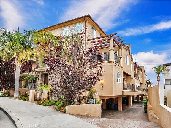 This charming 3 bedroom, 3 1/2 bath townhome has 2170 sq ft with an attached 2 car garage. All 3 bedrooms are ensuite! The primary bedroom and one other bedroom and bathroom are on the entry level with and garage access. The primary has its own balcony with a walk-in closet and a large bathroom. Upstairs is the main living area with high ceilings that create an open and light living space. The spacious living room has a fireplace and balcony, the large gourmet kitchen has lots of amenities; stainless appliances, a wine refrigerator, wine racks, and a breakfast/dining area as well as a huge kitchen island. Up the stairs to the third level is a large bedroom and bath with a third balcony that boasts horizon and peek of ocean views! Here is your chance to live that great beach lifestyle! Great area of South Hermosa Beach! Close to Greenbelt, beach, shops, and restaurants! A must-see!