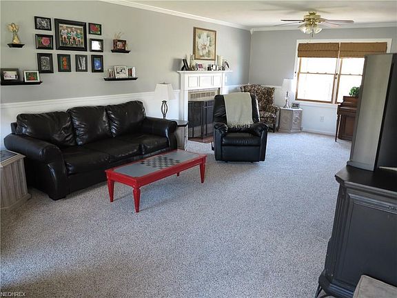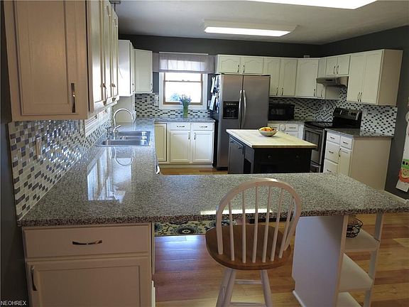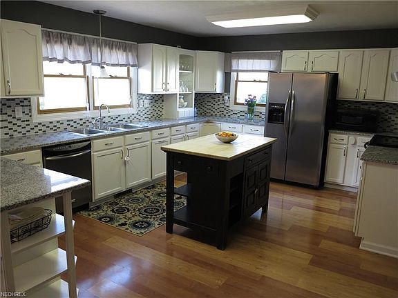 Welcome to this Wonderful Four Bedroom, 2.5 Bath Colonial located on a Private Cul-de-sac in one of Barberton's Finest Neighborhoods! This home has been Updated to Perfection, and features a Chef's DREAM kitchen with white cabinetry, endless Granite Counters, Breakfast Bar, Stainless Appliances, an Island, and tons of cabinet space! The large Great Room is well appointed with a Beautiful Gas Fireplace, White Wainscoting, Crown Molding, and newer carpet. All of the bedrooms are over-sized, and the Master features a sitting area, updated Master Bath, and Walk-In closet. Not included in the Square Footage of the home is the Partially Finished basement that makes a perfect playroom, or exercise room. Other updates include New Roof ('12), Kitchen ('16), Fresh paint ('15), Carpet ('16) Half Bath ('17). The Private Backyard has a large two-tiered deck with a view of woods and the Community Park. This one is going to go fast! Call today for your Private Showing!
