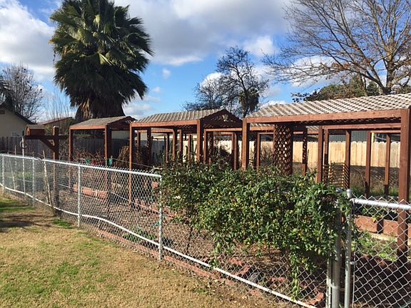 Beautiful single story 3 bedroom 2 bath with vaulted ceilings. New carpet and paint throughout. Dual pane windows with shutters, ceiling fans, breakfast nook & pantry. Backyard has built in raised gardens, a Tough Shed, RV parking and sits on a large lot.