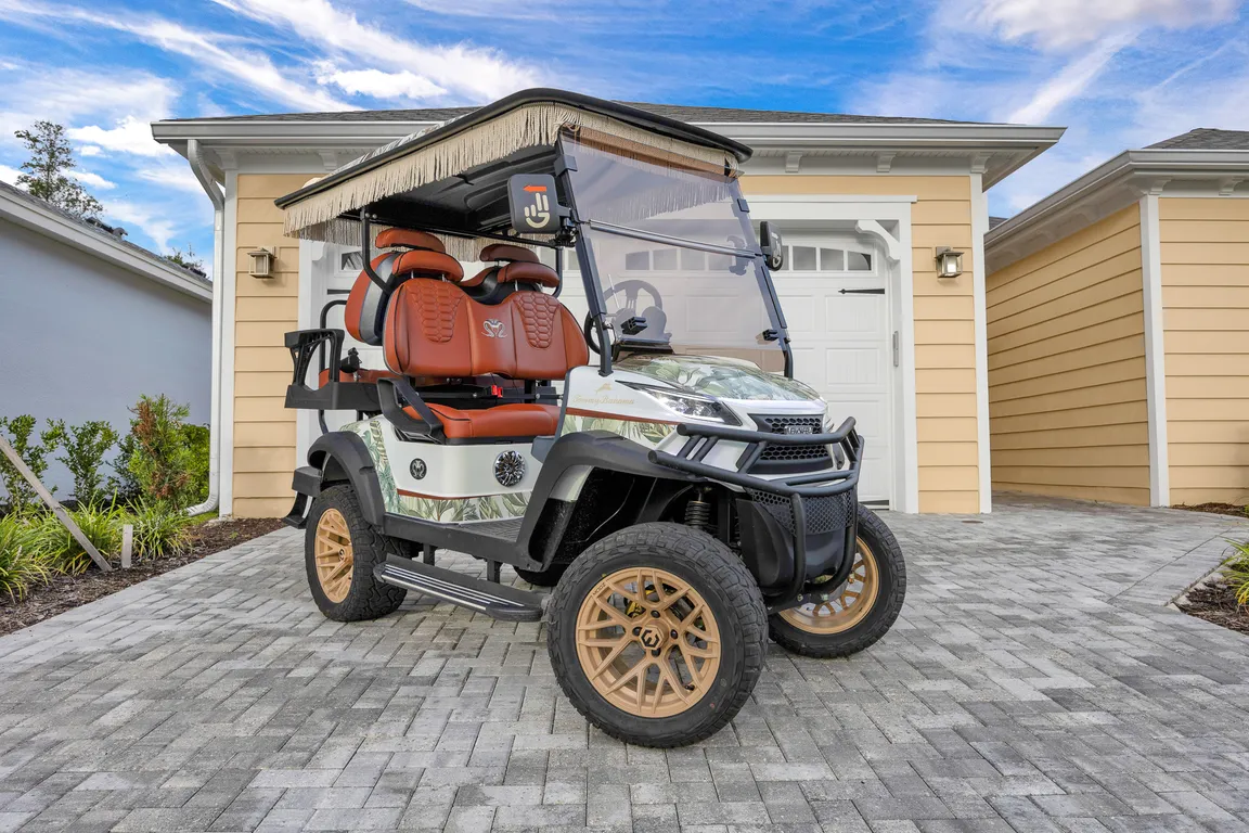 What goes with Lime? Coconut and a $15K 2024 Venom 4P EV Golf cart! This nearly new detached single family home is under builder warranty through October 2025. Nestled on a private wooded lot, you can Hang Loose on the extended screened lanai then take a ride on your custom Golf ...