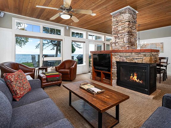 Thoughtful designPristine shorelineBeautiful architectural detailsStriking three-sided fireplaceStainless steel appliancesCustom cabinetryCambria countertops