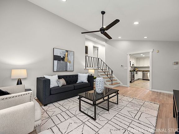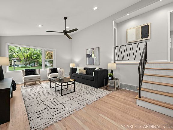 !!Charming Home with Modern Updates and Spacious Layout!! Welcome to this beautifully maintained home featuring natural hardwood flooring throughout the first and second floors. The spacious living room boasts a vaulted ceiling, creating an inviting atmosphere perfect for family gatherings. From the second-floor hallway, enjoy a balcony view overlooking the living room below. The larger kitchen offers ample cabinet space and room for a dining table, making it ideal for everyday meals and entertaining. Upstairs, you'll find three generously sized bedrooms, including a 15' x 10' primary suite built in shelving and large closet. Also, a beautifully updated bathroom. The finished lower level adds valuable living space with a family room and kitchenette, full bathroom, laundry and mechanicals. Recent updates include - Newly refinished hardwood flooring, freshly painted interior, new ceiling fans in all bedrooms, new a/c 2025, new outdoor lighting, new driveway 2023 & freshly sealed and updated landscaping. Outside, enjoy a detached 2-car garage and a large concrete pad, perfect for outdoor patio set. This location is perfect for walking to school, strolling over to the Golf course and enjoying a round of golf or having a cocktail or lunch at the courses restaurant. Highly acclaimed school district and great parks. This is a great home on a quiet, tree-lined street. You will not be disappointed.