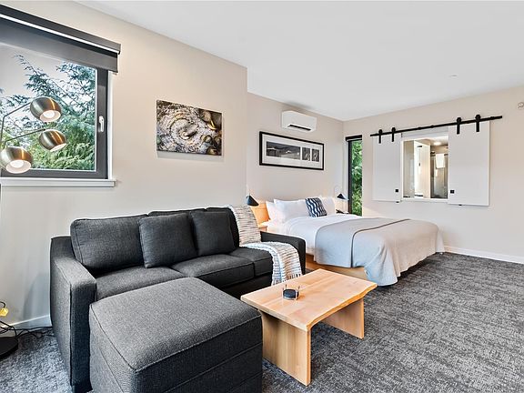 Luxury Studio Suite at Black Rock Oceanfront Resort – Private & Upgraded. This suite offers a rare blend of comfort, privacy, and premium upgrades. Unlike typical cottage studios, this unit features a custom kitchen extension with quartz counters and a full-base matching cabinet with oversized drawer and spacious shelves. The kitchen boasts a Wolf induction range, and Whirlpool appliances including a full-height fridge, convection oven/ microwave, and dishwasher. The oversized bathroom features a Riobel rain-head shower, designer sink, pendant lighting, a lighted mirror with adjustable settings, and a heated floor for ultimate comfort. Stay comfortable year-round with a heat pump for heating & cooling and a gas fireplace. Enjoy level entry with parking right outside—no stairs for easy access. Nestled at the end of Cottage Row, this suite offers extra privacy with tree cover and sunlight from both the south and west. A true West Coast retreat!