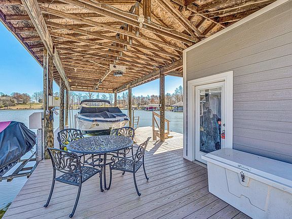 Charming Waterfront Contemporary with beautiful lake and mountain views. Very Gentle Lot with paver walkway to the Covered Boatdock. Two Power Jet Ski Lifts, Storage Cabana and new maintenance free decking. Walk into the Great room with Vaulted Ceilings, Gas Fireplace, Dining Area. Rounded Sheet rock corners and Archways give this a beautiful architectural design. Primary Ensuite Bedroom, Guest Rooms and office, all on Entry Level, Lower Level Family rm with gas fireplace,wet bar, Media Room and 2nd Primary ensuite bedroom. Oversized Double Car Garage, Paved Driveway. Two New High Efficiency Trane Heatpumps in 2019. Riddick Roofing inspected roof recently.