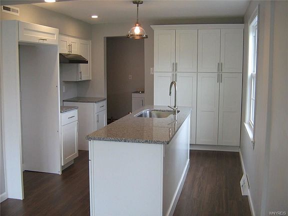 Fantastic, brand new everything within 5 months. White kitchen with granite counters, double pantry, stainless steel sink in island and dishwasher. Open floor plan to huge dining area. Dark laminate floors throughout, recessed lighting, 6 panel doors, new entry doors, windows, hot water tank, electric, plumbing and driveway, and so much more. Three bedrooms with huge closets. Master bedroom with new ceramic tile bath with walk in shower and walk in closet. Full bath on 1st floor along with 1st floor laundry. Family room 30x13 with corner gas fireplace and French door (with built in blinds) to double lot.