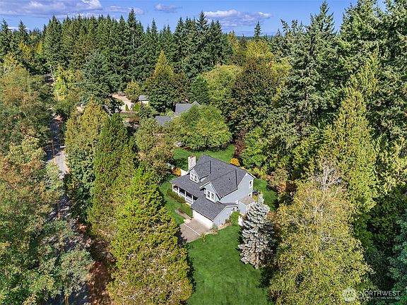 Welcome home to this sunny property on historic Old Mill Rd. Set on 1.74 acres, it offers a level lot w/year-round gardens, an orchard, fully fenced backyard & seasonal blooms from peonies to winter sweet box. Mature smoke trees steal the show each fall with a striking wash of purple. The neighborhood is equally exceptional, w/the community spirit Bainbridge is known for. Ideally located near award-winning Blakely Elementary & just minutes to the ferry, Winslow & trails. Inside, the great room features dramatic two-story windows, a T&G ceiling & wood-burning fireplace. The flexible floor plan includes an eat-in kitchen, dining and family rooms, plus 3 bedrooms, a bonus room and a primary suite retreat. A detached studio adds creative space.