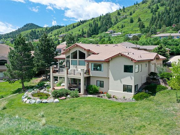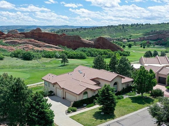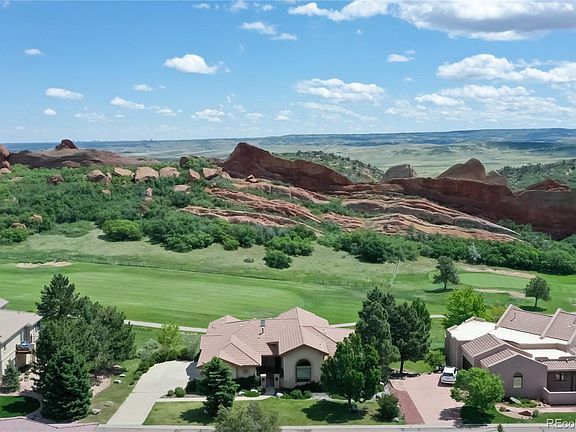 SHOWINGS START SATURDAY, JULY 16TH. This custom ranch-style home backs to the 16th fairway of Arrowhead Golf Course in the exclusive, private community of Roxborough Park. Nestled between Roxborough and Chatfield State Parks, Pike National Forest, and the scenic Arrowhead Golf Club, you can enjoy the authentic Colorado experience just a short drive from downtown Denver. This neighborhood has a 24-hour guarded entrance, 12 miles of privately maintained trails, and is surrounded by three nature preserves where wildlife abounds. After entering the community surrounded by spectacular red rock and foothill views, you will arrive at a spacious three-car garage with built-in shelving and plenty of room for hobbies, or you can come in through the gated courtyard. Once you enter the home, you will be greeted with a welcoming open floor plan, gas fireplace, large vaulted great room, gourmet kitchen, and dining area all opening to a deck showcasing an unrivaled view of the golf course, red rocks, and downtown Denver. This home is certainly perfect for entertaining both in and outdoors! The main floor also features a dining room with a step ceiling, a private study with 17' soaring ceilings, a guest bedroom with a jack-and-jill bathroom, laundry room, powder bathroom, and the large Owner's Suite with a walk-in closet, separate vanity sinks, a luxurious jetted tub, a linen closet, and shower. As you head downstairs to the walk-out level, you will find a large recreation room with a billiards table, cedar storage closet, a multi use bonus room, and two oversized bedrooms with a separate full bathroom. There is storage galore in this home! Relax on the flagstone patio and take in the beauty of the pond and waterfall, well-maintained garden, and did we mention the majestic views? This home is a must-see and truly has it all.