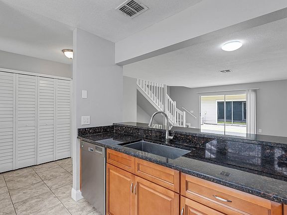 Available now! Lovely two-story townhome just minutes from the bustling heart of downtown Orlando and the Orlando International Airport! Enjoy the feeling and privacy of a single-family home as this property does not share any walls with its neighbors. Step inside to all NEW INTERIOR PAINT and ceramic tile flooring throughout the downstairs living space. The spacious kitchen is well appointed with STAINLESS STEEL appliances and GRANITE counters. The downstairs is complete with a convenient half bath for your guests and laundry closet with full-size WASHER/DRYER included! Follow upstairs to two generously-sized bedrooms, each with NEW CARPET and their own private ensuite bathroom. The strategic placement of the bedrooms at opposite ends makes it ideal for a roommate scenario.