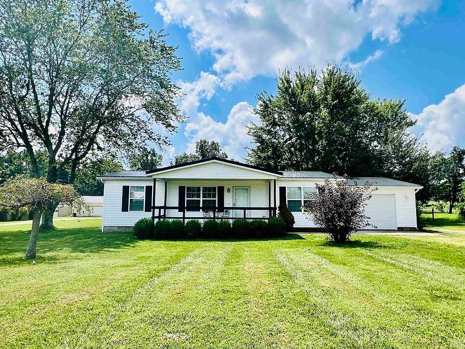 This clean and well maintained 2/3 bedroom, 2 bathroom manufactured home offers comfortable living in a peaceful setting. Inside, you'll find a flexible floor plan with space for a third bedroom, home office, or hobby room. Step outside to enjoy a covered back deck, perfect for relaxing or entertaining. The property features a 1 car attached garage plus a spacious 2 car detached garage with plenty of room for storage, projects, or extra vehicles. Sitting on just under an acre, the home offers both privacy and room to roam. Recent updates include a new metal roof installed in 2023, providing long-lasting durability and peace of mind. Don't miss this move in ready home with space, functionality, and a serene location.