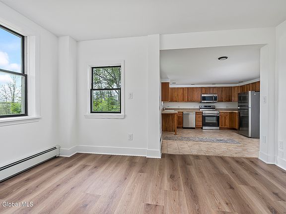 Classic Character meets Modern Updates. This 1820 Traditional Colonial is situated on 1 wooded acre in Guilderland schools. So many not to be missed features including: New roof in 2024, new interior doors, new storm door, new drywall t/o, new wall insulation, new trim, newly painted t/o, new LVT plank flooring, new electrical, new light fixtures, new plumbing drainage in kitchen, laundry, new basement slab with new under slab drainage. Add some finishing touches & this home and property are ready to go. .Attached garage, back deck, private wooded yard, barn/outbuilding and landscaping need some TLC . Sold As Is. Inspections for informational purposes. Fireplace has not been in use..