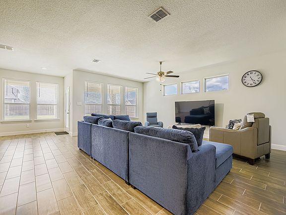 This like new, barely lived in smart home, features an open layout perfect for modern living. The spacious updated kitchen boasts generous cabinet storage and a large walk-in pantry, with a farmhouse sink flowing seamlessly into the expansive family room and dining area. The fireplace is plumbed for gas. Each bedroom comes with its own walk-in closet! The main-floor owner’s suite offers a luxurious retreat with a large walk-in closet and an ensuite bath. An additional first-floor bedroom is ideal for guests, or generational living, and the private study near the entry is perfect for working from home. The upstairs area is a place for the kids to hang out with two more bedrooms, a full bath, a loft, and a game room -you'll never see them! Outside, relax and entertain on the large covered patio, with a yard big enough for a pool. The large corner lot also means no neighbors on one side! There is natural gas on the patio - no more running out of propane!- plumbed for whole house filtration, and an option for gas or electric for your dryer.