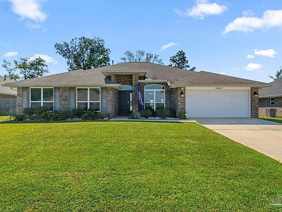 THERS'S SO MUCH ROOM FOR ACTIVITES!! This stunning 4-bedroom, 3-bathroom brick home offers 2,751 square feet of comfortable living space in the desirable Bellview neighborhood. The heart of this home is the large kitchen, featuring an abundance of white beadboard cabinets, elegant granite countertops, and modern stainless steel appliances that would make any home chef smile with delight. The thoughtful split floor plan provides excellent privacy, with luxury plank vinyl flooring flowing throughout the common areas. You'll love the spacious living area and separate dining room, both enhanced by soaring high ceilings and ceiling fans for year-round comfort. The primary bedroom suite is a true retreat, complete with a luxurious bathroom featuring both a separate shower and relaxing garden tub, plus generous closets. Practical touches include a large pantry for all your storage needs and a convenient 2-car garage. The fully fenced backyard offers privacy and security for outdoor enjoyment and pet owners will appreciate the enclosed space. There is also a Ring system and door bell that will convey for extra security. Hurricane shields are also a plus to provide lower home insurance and reassurance for home protection!! Located in a welcoming community, this home provides easy access to local amenities. Avondale Park is nearby, offering green space and recreational opportunities for residents. Daily shopping is convenient with Walmart Neighborhood Market just a short drive away on Mobile Highway. This well-appointed home combines modern conveniences with comfortable living spaces, making it perfect for those seeking quality and location. The attention to detail throughout, from the granite surfaces to the thoughtful floor plan, creates a move-in ready environment where new memories can begin immediately. CHECK OUT THE VIDEO!!