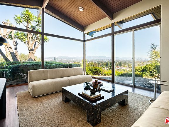 Perched on a private street off Wrightcrest Drive, this sophisticated mid-century gem is suspended over the city with breath-taking panoramic Los Angeles views from every window. The dramatic living room has vaulted ceilings with a two story picture window framing a view from downtown Los Angeles to the Griffith Observatory and Hollywood Hills. Prepare to be wowed. This L-shaped gem wraps around a lush landscaped backyard featuring a renovated salt-water pool, fire-pit, and a bonus side yard with a sitting area which offers a stunning pinpoint view of Downtown LA, as if it was designed solely for this perspective, perfect for your morning coffee or sunset gatherings. Timeless MCM details include; seamless indoor-outdoor flow, natural wood accents, expansive windows merging home with nature, vaulted ceilings in the living/family rooms, skylights bathing spaces with light, and original built-ins exuding era-defining charm. There are 4 bedrooms including a charming Jack-and-Jill (one large bedroom or two separate), luxurious primary en-suite with walk-in closet, and versatile office/guest room. Some modern upgrades include new plumbing, fully paid solar panels, dual-zoned HVAC system, gleaming hardwood floors, fresh fencing, revamped salt-water pool, and fire pit. Preserved original details meets modern comforts and all in Culver City Schools and Services! Blair Hills Park is at the end of the private drive and across Wrightcrest Drive, its blocks from the Stoneview Nature Center, across a footbridge from the massive Kenneth Hahn Park, close to the Baldwin Scenic Overlook, and easy access to the Park to Playa trail. Close to the new Whole Foods, Erewhon Market, The Culver Steps, Overlook, Platform, Downtown Culver City, Amazon, Apple, HBO, Sony and central to all Los Angeles has to offer! Come experience 5961 Wrightcrest Drive, a unique opportunity to own a once in a lifetime property.