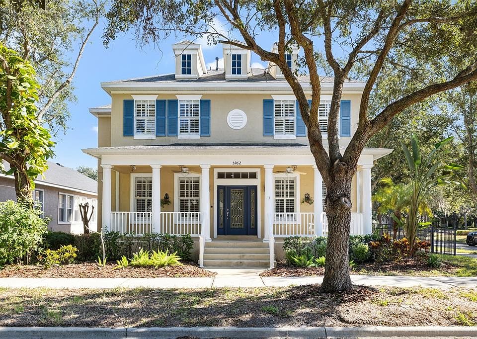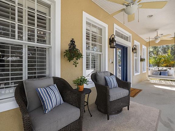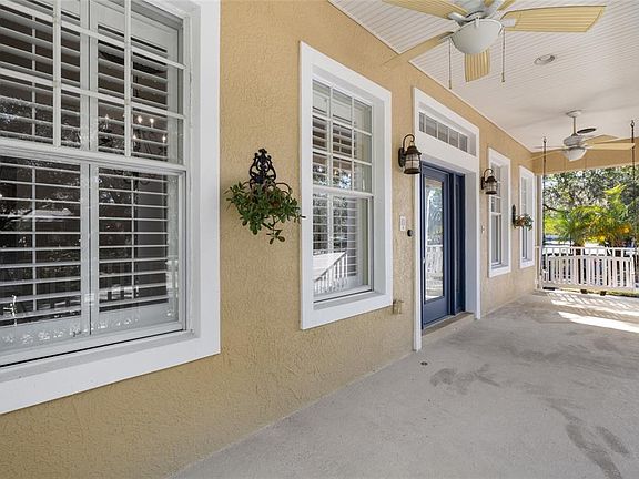 One or more photo(s) has been virtually staged. Welcome to the heart of FishHawk Ranch’s beloved Garden District! This stunning two-story home offers 4 bedrooms, 3.5 baths, and sits proudly on a picturesque corner lot framed by mature oak trees and lush landscaping. Just a short stroll from lively Park Square filled with dining, shopping, and a fun splash fountain and only moments from highly rated FishHawk Creek Elementary, the location is truly unbeatable. A charming front porch invites you in, perfect for unwinding on the swing with neighbors, friends, or family. Through the beautifully detailed glass front door, you’ll step into a warm and inviting layout. To your left is an elegant formal dining space, and to your right, through double doors, a spacious private office complete with built-ins, a generous walk-in closet, and plenty of room to work or create. The open-concept living area is the showstopper of the home. The family room features soaring 22-foot ceilings, custom built-ins, stylish shiplap accents, and even a thoughtfully designed under-stairs pet nook that adds both charm and function. The kitchen is equally impressive offering a large center island, 42" cabinetry, granite countertops, a breakfast bar, and a roomy dining area ideal for everyday meals and special moments alike. The primary suite is conveniently located on the first floor and feels like a true retreat. Enjoy the custom wood headboard with built-in lighting, tray ceiling, and its own mini-split system for personalized comfort. The ensuite bath includes granite counters, dual sinks, a jetted tub, walk-in shower, and a beautifully organized California Closet system. Upstairs, a generous bonus room welcomes endless possibilities; playroom, hobby space, second living area, or even a private spot for in-laws with a nearby bedroom and full bath. Two additional bedrooms share a spacious Jack-and-Jill bath and offer great storage. Outside, the fully fenced backyard features a brick-paver patio perfect for grilling, relaxing, or letting pets enjoy the outdoors. There’s also plenty of room to add a pool if you desire. The oversized two-car garage provides built-in storage and attic access. Additional standout features include: 18" tile floors, detailed moldings, plantation shutters, custom closet systems throughout, NEW ROOF (2023), TWO NEW A/C UNITS (2022), and NEW WATER HEATER (2022). This home has been lovingly maintained, thoughtfully upgraded, and warmly lived in and is ready to welcome its next owner.