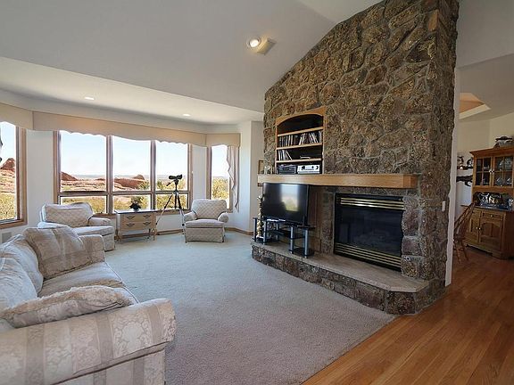 RED ROCK VIEWS to envy! Original owner custom built this extremely solid house & is now downsizing. Come get away & take advantage of this fabulous ranch. From the moment you drive up to the wide easy flat 3 car driveway, you will possibly think Serenity and Peace, when you walk in the front door your eyes go wide with exclamation from the panoramic view of the red rocks. The entire main floor is for relaxing, entertaining, searching for wildlife, reading or just being. The walk out basement offers two guest suites separated by a welcoming family room, wet bar, & outdoor patio. The workshop/art studio, is located at the end of the hall. You can do and make whatever you want without anyone seeing or interrupting your artistic talents. Abundant walk in closets are everywhere. The utility room is enormous for loads of storage. Two Furnaces, Two Water Heaters, all professionally maintained.