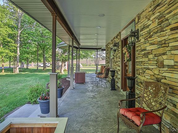Welcome to your dream home! This stunning new construction house is situated on 3.43 acres and boasts 4000 sq. ft. of luxurious living space. The 4-bedroom, 4 full bath home has room for everyone, and the open floor plan is great for entertaining. The focal point of the home is the beautiful kitchen which features plenty of quartz counter space, a center island w/seating for 4, upscale stainless-steel appliances, including a 6-burner gas range w/ hood. The wrap-around front porch, backyard deck private pond with a fountain, Firepit area and pergola provide ample outdoor space for relaxation and recreation. The finished basement offers additional living space and endless possibilities for customization. The separate cottage with a kitchenette and 2 full baths is perfect for in-laws, teens, an art studio, pool house or Airbnb. This home has a multi-zone high-efficiency heating and cooling system and includes baseboard hot water and in floor radiant heat. The house is located in a prime location surrounded by lush farmland, golf course views and is a short drive to Caz, Chittenango and Manlius. Don’t miss out on this once-in-a-lifetime opportunity to own your dream home!"