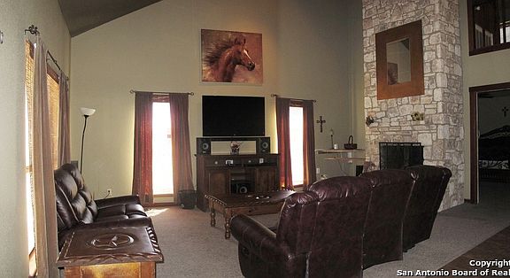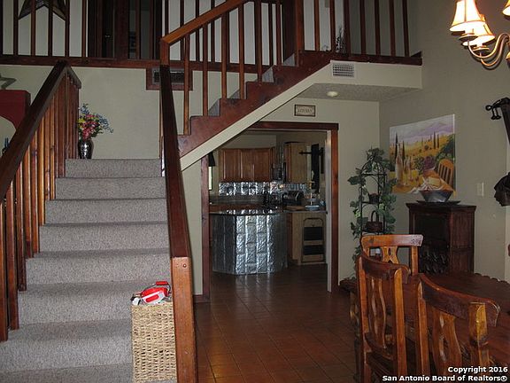 BEAUTIFUL TEXAS STYLE HOME ON 1.524 ACRES IN SOUTH BEXAR COUNTY*CLOSE TO IH37&USHWY181*LRG OPEN LIVING/DINING RM*ISLAND KITCHEN W/PREMIUM GRANITE*WOOD CUSTOM CABINETS*FRIDGE NEGOTIABLE*STAINED WOOD TRIM, BANISTER & RAILINGS OVER LOOK LVNG/DNNG RMS*DECORATIVE BAR & BOOKCASE CONVEY*LRG WALK-IN SHWR IN MSTR BTH*MSTR DOWNSTAIRS*LRG BARN W/CARPORT, WORKSHOP & FULLY FUNCTIONAL TACK RM*ABOVE GRND POOL & HOT TUB*42x24X4.5 POOL W/WOOD DECK*COVERED HOT TUB*RURAL WELL*LRG CVRD PORCH SPANS FRONT OF HOME*RM SZS APRX