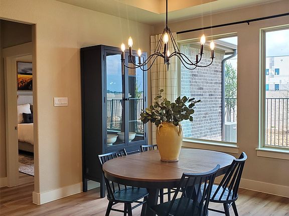 Luxury awaits in this stunning Builder’s Model Home in Fort Worth’s premier 55+ gated community! Offered fully furnished—including appliances, furniture & décor—this home provides a true turn-key living experience. The Torino plan features an open layout with upgraded laminate flooring, quartz countertops, oversized island with breakfast bar, 5-burner gas cooktop, under-cabinet lighting, pantry & mudroom. Light-filled living area with stained ceiling beams, gas log fireplace & access to large covered patio. Private owner’s suite with dual vanities, walk-in shower, large walk-in closet & utility room with built-ins. Guest suite & home office located separately for privacy. HOA maintains front & back yards for easy lock-and-leave lifestyle. Enjoy resort-style amenities: clubhouse, fitness center, pickleball, pool, putting greens, grilling area, fire pit, dog park & walking trails. Excellent investment—builder requires lease-back under great terms!