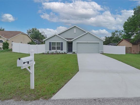 Very rarely do lived-in new construction homes like this come on the market!?? Built in 2022, this impeccable home with NO HOA is absolutely perfect and move-in ready. The owners have left nothing for the buyer to do except unpack and make it their own. This concrete block, 4 bedroom, 2 bathroom home is expansive with its 3-way split layout. The spacious rooms, with wall-to-wall ceramic tile flooring and recessed lighting throughout, optimize the modern and fresh living space. The open concept, eat-in kitchen overlooks the living area and dining room, providing sliding door access to the outdoor covered lanai.?? The home centers around the well-appointed kitchen with a suite of stainless-steel Whirlpool appliances, granite countertops and never-ending storage space.?? The main bedroom with its en-suite bathroom and walk-in closet are located at the back of the home, creating a private, separate oasis from the other bedrooms. Two additional bedrooms are located at the front of the home and are separated by a bathroom.?? A final bedroom is nestled between the laundry center with its upgraded washer and the two-car garage, creating a space perfect for an additional guest bedroom, home office or nursery. The backyard is private and completely enclosed with new vinyl fencing, making it both super pet friendly and securing it from access to the front yard. The outdoor space, with newly planted saplings and ample room for a pool upgrade, is perfect for relaxing, entertaining and outdoor living. The home also features an ADT Smart Security System, which currently includes exterior cameras and monitors to entry points to the home. This house is shiny and new, and ready to be molded into the home of your dreams. 2022-10-27