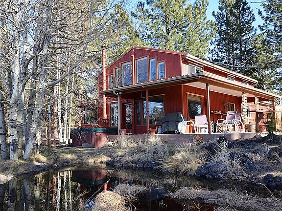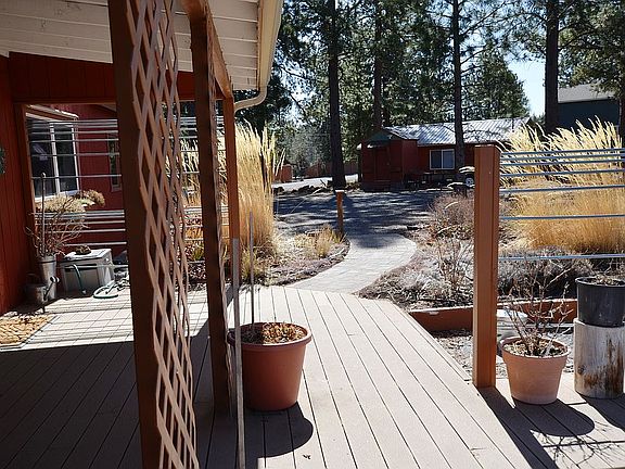 Gorgeous view with a great house. The house is located two miles south of Route 97 Exit 143 on a quiet cul-de-sac off a well maintained paved road. The house has 4 bedrooms, 2 full baths, appx 1760 SQ FT on two floors. It is on about 0.9 acres and has a magnificent view of Mt Bachelor, the lava flow from Lava Butte and the Deschutes National Forest. There is a 1 car heated attached garage and an oversized (700+ sq ft) 2 car free standing garage. A 6 zone mini-split heating and cooling system supplements an oversized wood stove. There is a 6 person hot tub and a 6,000 gallon pond with goldfish next to the house. The kitchen and bathrooms have all been upgraded. There is a large wrap-around Trex deck facing south and west partially covered by a roof overhang; also a Trex deck on the north providing shade for outdoor dining in the late summer. A large, flat, gravel open driveway provides ample off-street parking. There is a 14 Panel 4KW Solar Array that feeds power back into the grid. Every month Pacific Power sends a check to pay for the generated electricity. The power to the house has been upgraded to 400 Amp Service. Water is provided by a well that taps into a 50 foot deep aquifer and there is a standard septic system to handle the waste. You need to come on to the property to appreciate the location and the view. We are friendly and don't have any dogs. Buyer's Brokerage Compensation 2% There is an optional well established small business for sale that would take about 60 hours a month to run that nets enough to pay 2/3 rds to 3/4ths of the estimated mortgage. Details upon request. Contact Owen. 541-977-7530