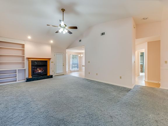 Breakfast barInviting covered back porchTable areaFormal dining areaVaulted ceilingAll appliancesKitchen features custom cabinets