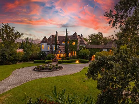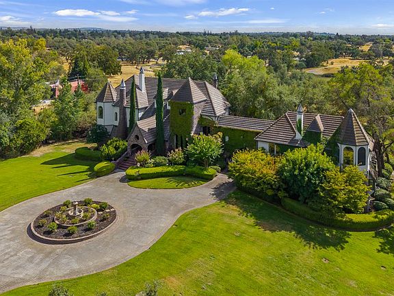 Unique and extraordinary! This 5.2-acre estate is located in the esteemed gated community of Sierra Ridge Estates. Known as 'The Castle'- this residence boasts 7,437 square feet, featuring 5 bedrooms and 6 bathrooms, along with a breathtaking storybook entrance that is simply enchanting. A primary suite, full guest suite/apartment, and multiple living & entertaining spaces create a true retreat. The guest suite has 2 bedrooms with a kitchen and 2 entrances- one from the garage and one from the home! Enjoy a game room, outdoor kitchen, and resort-style pool overlooking manicured grounds, a serene private pond, leased solar, a 4-car garage on one wing and another 2-car garage on the other. Minutes from Folsom Lake, top-rated schools, shopping, golf, and more!