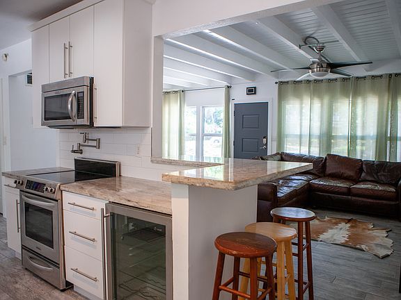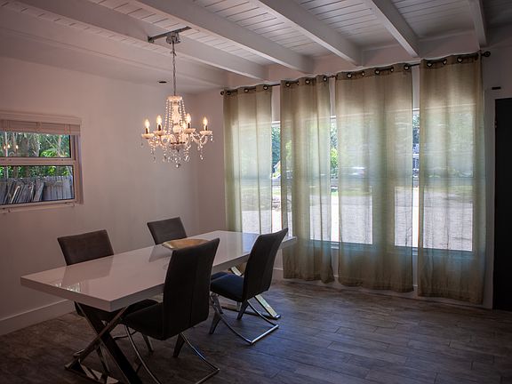 Upgraded 3 bedroom 2 bath South Miami home, on a dead-end street minutes from the University of Miami. Huge master bedroom with large suite bathroom. Home is Perfect for a family, students, or anyone seeking a peaceful yet central location. This remodeled residence features modern finishes throughout with classic exposed wooden beams. Large tropical yard with pond feature in the rear yard creates a serene outdoor escape, offering total bliss for relaxing or entertaining. Enjoy the charm of a tucked-away neighborhood with the convenience of nearby coconut grove , brickell and campus life. Home is ready for occupancy. ONE-year lease. First and last month's rent and security deposit required. The owner pays for yard maintenance. Private parking in circular driveway.