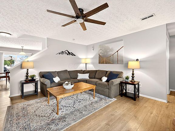 This move-in ready gem combines comfort, style, and convenience in one perfect package! Start your day with coffee on the charming covered front porch and wind down on the private rear paver patio—perfect for entertaining or relaxing. Inside, the open-concept kitchen features white cabinetry, newer stainless steel appliances, and flows seamlessly into the dining area—ideal for both everyday living and hosting guests. The spacious great room offers a warm, inviting gathering space for family and friends.