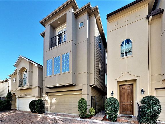 Introducing this stunning 3-story home located minutes from downtown & meticulously maintained! This custom home is complete with 3 spacious bedrooms, 3 1/2 baths, a 2-car garage, and small backyard with artificial, pet friendly grass. This spacious, open floor plan is perfect for entertaining. The 1st floor includes a generous bedroom and full bath with plenty of storage. Centrally located on the 2nd floor is the large living room, kitchen, dining and breakfast room, with large walk in pantry and utility room with storage. The 1/2 bath is conveniently located on the 2nd floor. The 3rd floor includes the 2nd bedroom and private full bathroom, large primary bedroom with jacuzzi tub and separate shower. There is fresh paint throughout, brand new carpet, LCD pane security system, 2 nest thermostats, water filtration in kitchen, & motion activated kitchen faucet. It has custom window treatments, custom built-ins, in pantry, utility room and primary closet. Home has never flooded!
