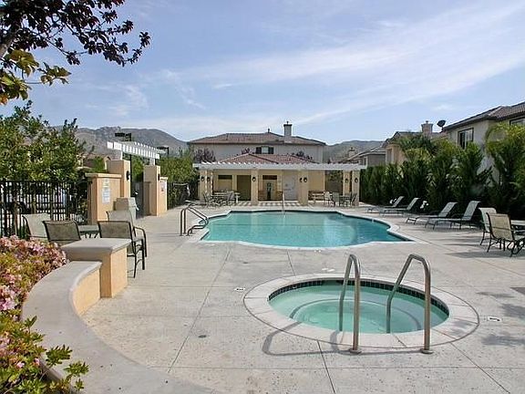 Delightful, light & bright 2 story, 3 bedroom, 2.5 bath home in the gated Briarwood community in east Simi Valley. This turnkey home offers neutral colors, an open floor plan w/entry into the living room, featuring tile flooring throughout the downstairs, plantation shutters & custom leaded stained glass windows, lighted ceiling fans in all bedrooms, carpet on stairway and upstairs. Other features include a living room w/a fire place, media niche & built-ins. The dining room has a decorative chandelier w/a slider to the wrap around patio w/block wall fencing. The spacious kitchen includes a large kitchen island w/breakfast bar, ample cabinetry, a gas range w/oven, microwave & dishwasher. The powder room, under-stair storage & laundry are also downstairs including a 2 car garage w/roll up door. All three bedrooms are upstairs w/a spacious master suite & sitting area featuring a lighted ceiling fan & master bathroom w/dual sinks, a separate tub and shower! Much more! Wow! Brokered And Advertised By: Troop Real Estate Inc. Listing Agent: Alex Gandel