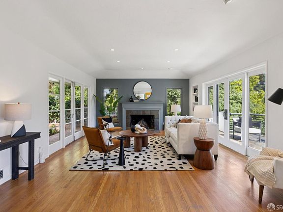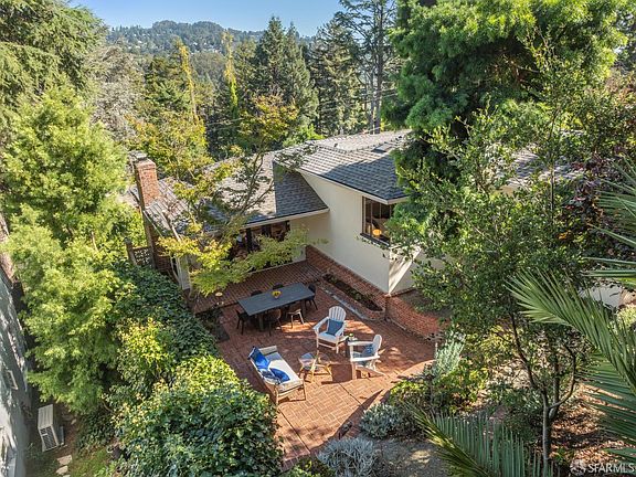 Tucked at the end of a peaceful cul-de-sac just steps from Montclair Village, this nearly quarter-acre retreat blends leafy tranquility with unbeatable walkability. Step inside to a bright and airy living room anchored by a cozy fireplace, where double doors connect to both a front balcony and a private backyard oasis indoor outdoor living at its best. The fully fenced rear yard is ideal for pets, or weekend entertaining under the trees. The main level features a cheerful dining room, two inviting bedrooms, a skylit bath, and a thoughtfully designed kitchen with a sunny breakfast nook. Downstairs, the versatile third bedroomwith its own exterior entranceoffers endless possibilities as a private guest suite, home office, or family room. A second bath, wine room, wet bar, and bonus space round out this flexible lower level. Original steel casement windows frame lush outlooks in nearly every room, while a brand-new roof brings peace of mind for years to come. A spacious two-car garage with interior access provides abundant storage. Easy freeway access gets you to downtown SF in under 30 minutesor keep it local with a 5-minute stroll to Montclair's coffee shops, farmers market, and local restaurants. A verdant sanctuary with city living at your doorstep. Welcome Home.
