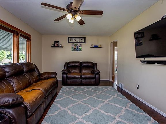 Very nice vinyl sided ranch located near everything, siding, windows, new central air 2019, and water tank 2019. It has a very charming, fenced yard with 3 season room and a large 2 car garage, concrete drive in very good condition. Home has finished rec room w/possible 4th bedroom or office, updated electric box, glass block windows, very nice curb appeal, Pergo floor in kitchen/dining/living rm.