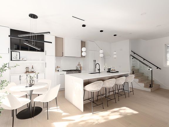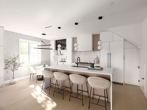 Front 1/2 duplex in desirable South Granville offering over 2,000sf, 4 bedrooms & 3.5 baths across expansive 3 levels. Designed to live like a detached home with a spacious island kitchen, full dining area & expansive living space. Eclipse doors open to a large private patio & yard for seamless indoor-outdoor entertaining. Upstairs features 3 generous bedrooms including a house-sized primary with walk-in closet & spa-like ensuite. The massive top floor offers over-height ceilings, a private balcony & flexibility to use as a 4th bedroom, office, gym or media room. Radiant heat, A/C, Google Nest, built-in speakers & secured parking provide modern convenience. Exceptional location near parks, shops, cafés & transit, with easy access to Kerrisdale, Oakridge & downtown.