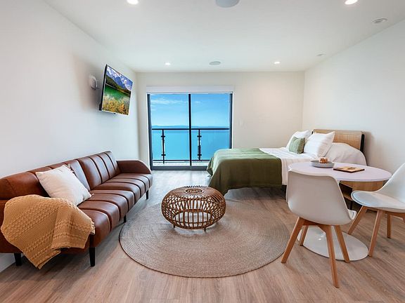 Nestled along a scenic coastline, this cozy beachfront studio offers the perfect blend of comfort and modern convenience. Featuring a sleek bathroom, in-unit washer and dryer, and a fully equipped kitchen with top-of-the-line appliances, it has everything you need to feel at home during your relaxing stay. Step outside to breathtaking ocean views and the soothing sound of waves. Just steps from the sandy beach, this studio is ideal for sunbathing or peaceful sunset walks. Enjoy a serene escape in this thoughtfully designed retreat.