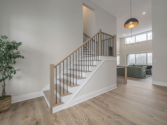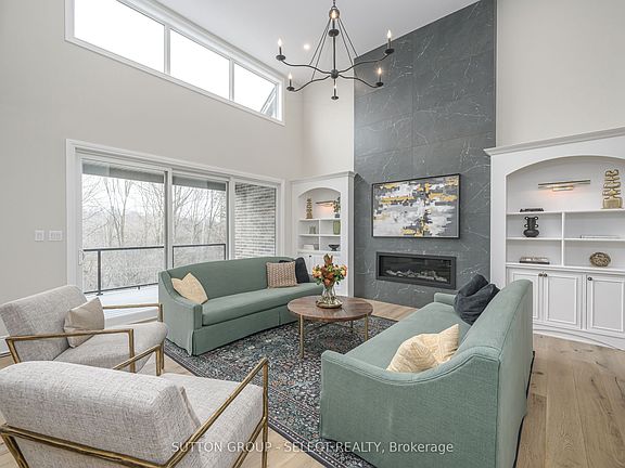 Nestled on a premium ravine lot overlooking the Medway Valley Heritage Forest this exquisite property combines nature & lux lifestyle. Striking natural stone w/ copper, stucco & cedar detailing creates a captivating facade. Lush forest at back & protected green space to the west wrap the property in beauty & privacy. Steps away walking paths meander over a creek & through the woods. The interior offers a masterpiece of architectural sophistication: w/ arches, soaring ceilings & built-in cabinetry. Alluring foyer views draw you in. Dramatic lighting guides you to the great room w/ 16-ft ceiling, floor-to-ceiling fireplace surround, massive windows offer spectacular views & natural light. The covered balcony provides a shaded escape. The kitchen is a designer's dream, w/ a 4-seat natural walnut island, ceiling-height cabinetry in deep juniper tones & an elongated walnut range hood. Built-ins, 6-burner gas stove, integrated fridge & a walk-in pantry complete this culinary haven. White Oak hardwood flooring stretches across the principal rooms. The primary suite boasts a cathedral ceiling, romantic fireplace & beautiful views. The 5-piece ensuite offers a fresh, spa experience w/ walnut vanity, penny tile floors & a zero-entry shower w/ artisanal tile feature walls in shades of fresh eucalyptus. Wide hallways make this a perfect home to age in place. Additional features include main floor office, 2nd bedroom w/ shared 5-piece ensuite & main floor laundry. The loft adds a comfortable guest suite. The finished lower-level walkout opts as a separate 2-bedroom residence, or as an extension of principal living featuring a 2nd kitchen, spacious media room, cheater ensuite, staircase to garage & bonus room w/ garage door to yard ideal for gym or flexible entertaining space. This property transcends the ordinary, offering a lifestyle of refined luxury in harmony with nature, each detail thoughtfully crafted to create a home that is as exquisite as its surroundings.