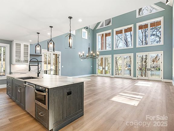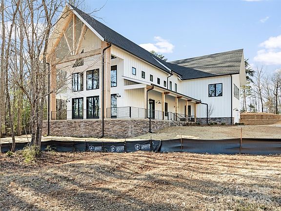 New construction, Custom waterfront modern farmhouse "Barndominium" located on Lake Wylie just minutes from the Boyd Bridge. This unique property blends rustic charm with contemporary elegance, offering the perfect retreat from everyday life. Open-concept living area with 32 ft ceilings and large windows that flood the space with natural light and provide stunning views of the lake. Gourmet kitchen with quartz counter tops, custom cabinetry, massive walk-in pantry, and a large island perfect for entertaining. Primary bedroom on main adjoins spacious laundry room. Huge 3+ car garage and wrap-around covered porch. Custom closets and gorgeous light fixtures throughout. Upstairs features 3 more bedrooms, 2 full baths and a GINORMOUS rec room, perfect for work outs, movie nights or sleep overs! Enjoy this beautiful home with direct access to waterfront area with beach and fully refurbished rip rap, no HOA. Dockable shoreline area to add your own dock on this deep water cove.