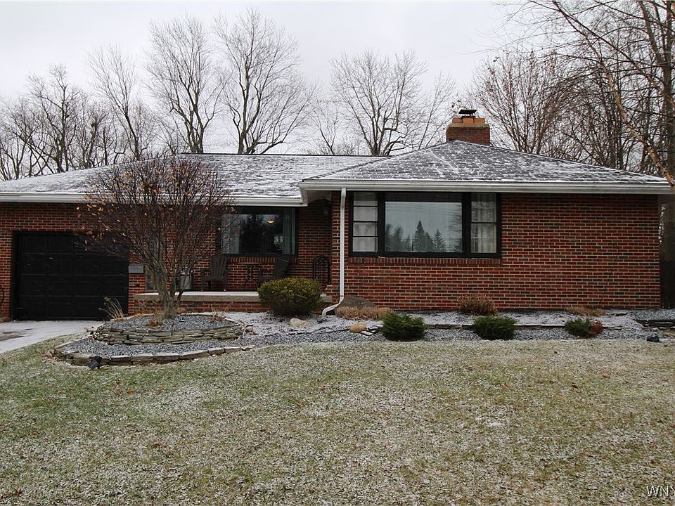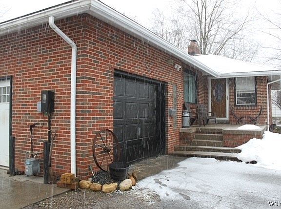 Brick ranch on slight hill. Living room with very pretty stone fireplace, wood floor. Also same fireplace in lower family room. Dining room, kitchen with eating bar, stainless steel appliances and loads of cupboards. Glass doors to rear patio (covered), primary bedroom, additional bedroom and full bath. Garage with many built in cupboards. Lower level of home offers work out area, laundry room, family room, workshop, storage and more. Walk out door to garage. Agent square footage differs from tax records due to the inclusion of the sun room.