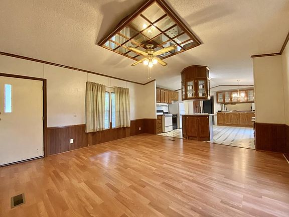 Well maintained mobile home located on a beautiful, quiet, unrestricted acre. Septic is set up for 2 mobile homes. This home features covered front and back deck, spacious kitchen area with plenty of storage, island counter, breakfast bar, pantry, built-in china cabinet, built-in desk area, laundry area, split floor plan, high ceilings, large master en suite with double sinks, garden tub and shower. Metal roof with added insulation is only 4 years old! Property is partially fenced and has a detached double garage.