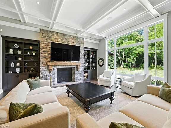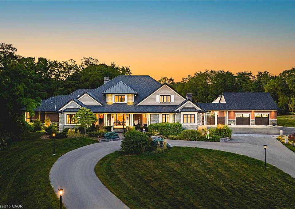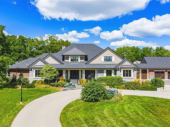 AMAZING! Custom Bungaloft nestled on a spectacular 12-acre property in Burlington. Featuring 5+1 bedrooms, 6 full bathrooms and 2 half baths with an attached triple car garage AND detached double car garage with storage loft! Boasting over 5,400 square feet PLUS an additional 4,300 square feet in the finished lower level. Resort-style exterior with a pool, hot tub, pond, cabana, outdoor kitchen, full bar, built in BBQ area, golf green, two firepits, a fireplace and 5+ forested acres! The main floor offers DUAL primary bedrooms- each with ensuite baths and large walk-in closets. There is also a main floor office and oversized dining room. The kitchen features a large island, stainless steel appliances and a walk-in pantry. The kitchen is open to the living room- which features 12’ ceilings and a stunning wood burning fireplace. There is also an oversized mudroom / laundry room with garage access and two powder rooms. The 2nd level of the home includes 3 large bedrooms and a 5-piece bathroom. The lower level (accessible by stairs OR elevator) features an amazing rec/family room, 6th bedroom, second kitchen, 2 full bathrooms, a wine cellar, gym, sauna, wet bar and plenty of storage! This home was custom built by Glen Oak Homes in 2016 and a main floor addition with full basement was added in 2024. The entire property was fully landscaped in 2023/2024. Interior and exterior ‘smart’ features throughout, highly efficient and fully private- a true paradise. Luxury Certified