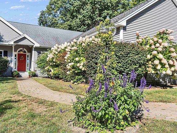 Privately set back from the road, this executive ranch home combines quality craftsmanship with an exceptional setting, highlighted by sweeping views of Crotched Mountain. The thoughtful design places everyday living on the main level, offering three comfortable bedrooms, including a sun-filled primary suite with ample closet space and a private bath. Generous living and dining areas showcase the home’s fine construction and finishes, creating a warm yet refined atmosphere. The lower level provides remarkable flexibility, with expansive finished rooms that can serve as gathering spaces, a home office, or hobby areas. Ample storage, a convenient 3/4 bath, and a second laundry area make this level as practical as it is spacious. A three-car attached garage ensures easy access, while the detached two-bay tractor barn accommodates equipment, recreational vehicles, or additional storage needs. The property is well-prepared for all seasons with a whole-house backup generator, and the grounds feature beautifully landscaped perennial gardens that bring color and texture throughout the year. Offering both privacy and accessibility, this home presents a rare opportunity to enjoy refined single-level living, versatile additional space, and a peaceful setting framed by mountain views.