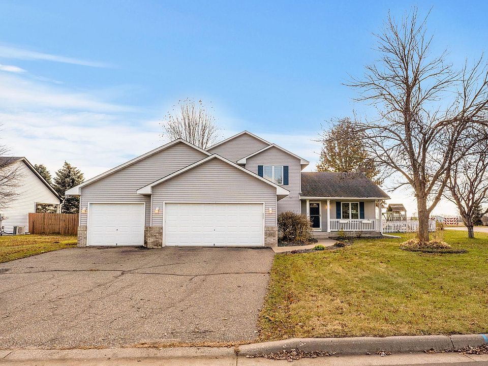 Welcome to 597 Tuttle Drive. A wonderful two story Located in Hastings MN. This home is move-in ready and located on a quiet street within walking distance of Tuttle Park. This property is great for entertaining with a main-level open concept and walk-out access to the deck and backyard. The main level living room is huge with vaulted ceilings, new carpet, and tons of natural light. The kitchen has upgraded cabinets, stainless steel appliances, tile backsplash, hard surface flooring, quartz countertops, and a breakfast bar. The upper level also includes a private on-suite bathroom, full bath, and LVP flooring. The lower level is framed in and has a half-finished 5th bedroom with an egress window just waiting for the new owner to finish adding instant equity. Other updates include new paint, a main level bedroom, main level laundry, main level ¾ bathroom, all living facilities on one level, 3 bedrooms on the upper level, LVP flooring, a great entryway, a great entertaining space with a large deck and pergola, backs up to cornfield, and a private fenced backyard. Oversized living spaces, full primary suite, beautiful kitchen and bathrooms, vaulted ceilings, 3 car garage, deck, tons of storage shed, park just up the street, shows like new. A must-see.