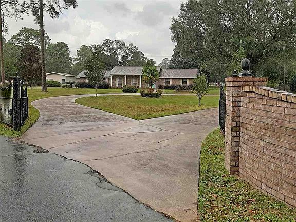 The beauty of this Traditional Estate Home is how it is sitting pretty on approx. 1.87 acres of beautiful treed property. Some updates have already been started so bring your ideas to make this home your showplace. You will have 4 Bedrooms, 3 Baths PLUS there is a 14x10 room off the master (not included in sf) that you could make into your office/gym/sewing room. Just add the heat/air to it and you're all set. The Foyer offers tiled Flooring and large enough for your Favorite Entry Decor to be displayed. There's a 24x13 Living/Dining Room off to your left and then on into the Sunken Family Room featuring a Woodburning Fireplace to gather around during those Winter Chilly Nights AND the Kitchen is on your right with lots of cabinets and Solid Surface Countertops PLUS you have a Large Center Island, Separate Buffett Counter, Pantry, Dishwasher and Stove. More SF to be gained and not included in the Living Area SF is the Sun Room on the back - there is an AC floor unit you can use to cool it off during the Summertime. Bedrooms 2 and 3 are nice size with Ceiling Fans and Bedroom 4 is on the other side of the home and comes with it's own Foyer Area and Bath. The oversized garage is a side entry. Need a workshop? This home has a nice workshop that has 3 separate areas. All one building with a 19x19 office are that is finished out with paneling and power. A 17x15 Area that has drain and mud sink AND the 15x9 area has more storage. Other amenities include a BRAND NEW Architectural Roof, Circlular Drive, Lot is fenced with Front Gate so many possibilities for this beautiful property and very convenient to Whiting Field, Blackwater River, Downtown Milton, Shopping - Walmart, Target, Lowe's, Home Depot. Check it out today.