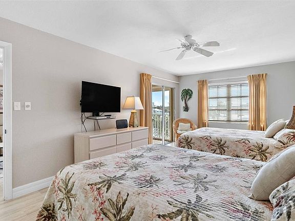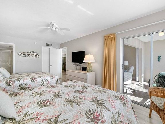 This charming one bed, one bath beach condo at the popular Palm Bay Club offers the perfect blend of comfort, style and coastal living. Perched on the gulf side of Midnight Pass Road, the Gulf of Mexico is just steps from your front door. With this prime location you’ll enjoy easy, private access to the powdered sugar sand of Siesta Key’s Crescent Beach, one of the gulf coast’s premier vacation destinations! The interior of the condo is thoughtfully designed and tastefully decorated to maximize space and function. The vinyl plank floors throughout are not only handsome but also afford a low maintenance foundation for the coastal décor. The kitchen offers bright white cabinets with bold black granite counters and attractive stainless appliances. The open concept living and dining room is nicely furnished and a welcoming space to recharge between sunny Siesta adventures. The lanai, which has been integrated into the living room, is enclosed with three glass sliders that permit abundant sunlight and can be opened for a refreshing saltwater breeze. The bedroom is a peaceful retreat with two beds for maximizing the guest allowance. An updated bath is not only attractive, but a pleasing space to refresh. A true beach to bay community, the Palm Bay Club delivers the ultimate Siesta Key owner opportunity with unlimited access to two heated swimming pools, a hot tub overlooking the peaceful intercoastal waterway, complimentary fitness center, lighted tennis courts with pickleball, boat docks (daily rental, 21 ft max), BBQ grills, and a fishing pier. A three night minimum rental policy and outstanding onsite management make this an enticing opportunity for the owner/investor!