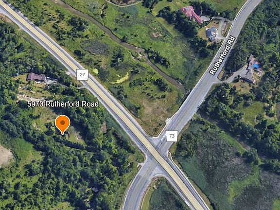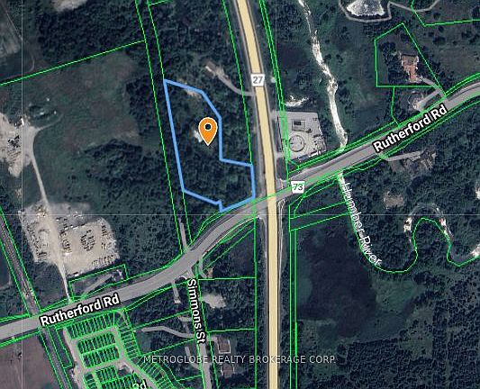 The approximately 4.72-acre property benefits from the retention of the original residential foundation, including separate concrete garage foundations, offering an existing physical framework that may lend itself to the creation of a future residence, subject to applicable approvals and due diligence. A rare and prominent corner landholding at the northwest intersection of Highway 27 and Rutherford Road, offering scale, visibility, and a natural sense of separation seldom found along a major urban corridor. Defined by mature tree cover and natural elevation, the land creates a setting that feels distinctly private while remaining closely connected to the surrounding city. The site's character and topography provide an exceptional backdrop for those envisioning a refined estate setting, a legacy-oriented hold, or a carefully positioned long-term investment. Framed by established neighbourhoods, expanding employment lands, and key transportation routes, the property invites thoughtful consideration from buyers seeking presence, discretion, and control over timing. Purchasers are encouraged to conduct their own due diligence regarding zoning, environmental attributes, servicing, and potential future use.