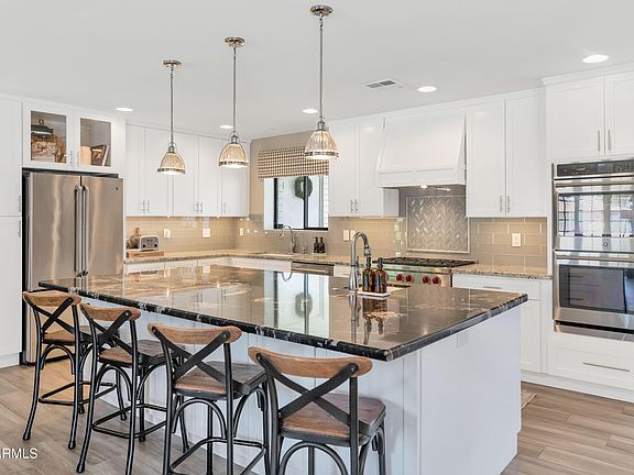 Charming family home just across from the Arizona Country Club located on Orange Blossom Lane. This home has an open floor plan and features 3 bedrooms, 2 bathrooms, built-in shelves with desk and 2 separate offices. Tile hardwood flooring and large windows in the great room allow lots of natural lighting throughout. The gorgeous gourmet kitchen with large island and granite countertops is equipped with stainless steel appliances, including a Wolf gas cooktop. The spacious primary bedroom has a great walk-in closet and a nice bathroom with a large shower. There are also two large bedrooms that share the second bathroom. Adding to its appeal are two additional rooms that currently serve as separate his and hers office spaces.