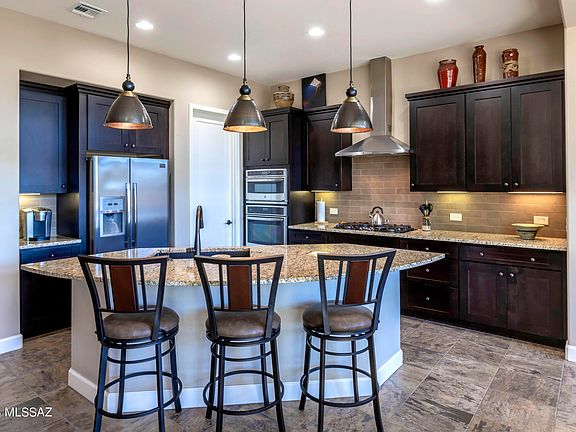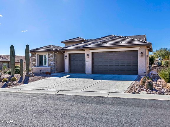 Sought After Fresco Model Home on a Corner Lot w Office/Den. Enjoy the many upgraded amenities of this home. *Bar/Buffet with full cabinets. *Gourmet Kitchen w/built in appliances, 42'' Upper Cabs, Soft Close & Pull out Shelves * 8' Interior Doors * 5 1/4'' Baseboards * Bedroom Extensions and XL Laundry Room * 3'' Plantation Shutters Throughout & Automated Shades in GR *Full 3 car extended garage, *8' extra tall garage door* Soft Water * Hot Water Recirculation ***Enjoy outdoor living on extended pavered patio w/built-in fireplace *Center Opening Sliding Patio Doors * BBQ Station *Fire Pit * Xeriscaping w/Boulders & Accent Lighting * Backs to large common area w/ peek-a-boo views to Catalina & Tortolita Mountains