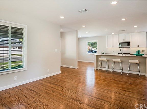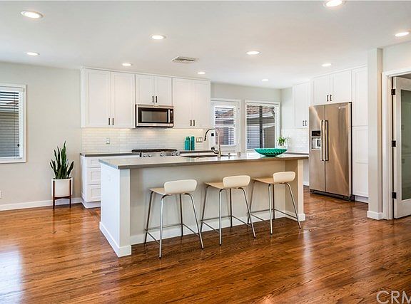 Welcome to this beautifully renovated Los Altos home ready for indoor/outdoor living. Poured concrete steps leads you to a comfortable porch and dutch door entry. As you enter you will notice the beautifully refinished hardwood floors throughout. This home features 3 bedrooms down a private hallway and newly remodeled bathroom. Fully remodeled open-concept kitchen featuring quartz counter tops, high quality fixtures, and a full range of brand new KitchenAid stainless appliances including refrigerator. The kitchen spills into a living room boasting a charming brick fireplace. The bathroom is highlighted by a double vanity, a beautifully tiled shower and quartz counter tops. Throughout the home plenty of storage is provided. The backyard features many areas to entertain with the addition of a newly poured patio. Raised garden bed with irrigation positioned just out the backdoor. Backyard is large enough to expand the home on one level. A new 200 amp panel has been installed. Conceptual plans for addition available to view at the property. The two car garage has been fully finished with drywall and fitted with a new roll up garage door. There is potential for drive-thru garage to the backyard concrete pad. This home has forced air heating and air conditioning with new ducting. Home is situated between Atherton and Stearns placing it within the Minnie Gant Elementary School boundary. Gant consistently ranks as a top elementary school in the Long Beach Unified School District.