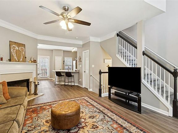 Stop renting! Affordable living in Sugar Hill! Walk to Kroger, LA Fitness & restaurants. Close to parks, Lake Lanier & Sugar Hilll Golf Club. This home is steps away from swim/tennis/clubhouse. Tennis/pickleball courts recently resurfaced. This home features newer LVP flooring throughout main level, granite counters in kitchen w/stainless appliances & 9 ft ceilings. Owner's suite upstairs w/ tray ceilings, full bath. Secondary bedroom w/full bath too! Finished terrace level has half bath attached for guest room/office/workout space. 1 car garage has extra space for storage, electric bikes or scooters. New water heater & roof is only 4 years old. Monthly dues include water, yard maintenance and termite coverage. Washer/dryer/refrigerator stay!